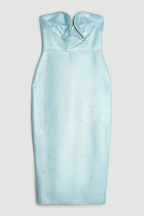 Petite Foiled Figure Form Bandage Corset Midi Dress