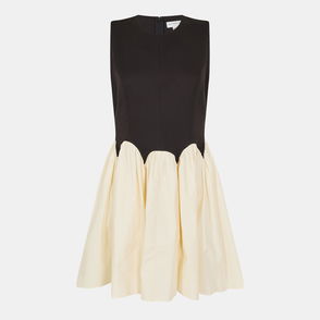 Atelier Satin Faux-Fur Trim Mini Dress In Black