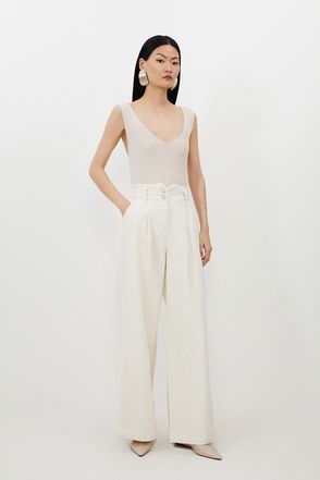 Chain-Belt Wide-Leg High-Rise Stretch-Denim Jeans