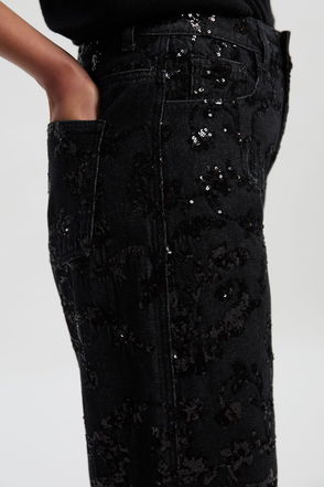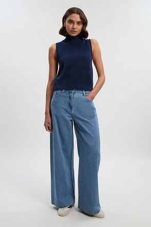 Leather-Pocket Wide-Leg High-Rise Stretch-Denim Jeans