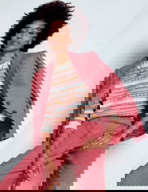Marion Merino High Neck Jumper-Linen, Pinotage Colour Block