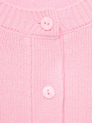 Crew Neck Micro Knitted Cardigan In Pink