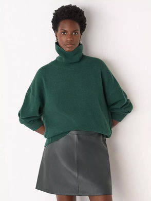 Curved Hem Roll Neck Pure Wool Jumper