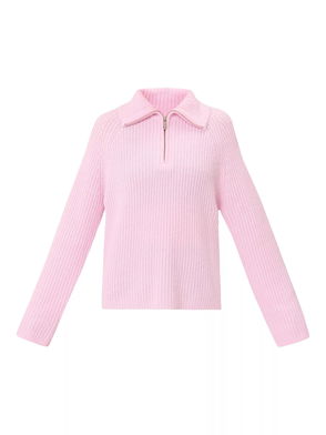 Knitted Funnel Neck Half Zip Wool Blend Jumper, Frost Pink