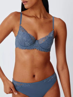 Luna Floral Embroidery Plunge Bra, Light Blue