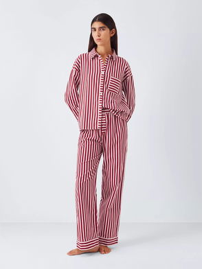 Holly Long Wide Leg Pyjama Set, Red/Ivory