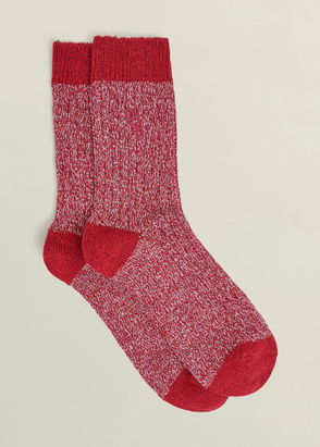Cotton Blend Ankle Socks, Pack Of 2, Berry Red/White