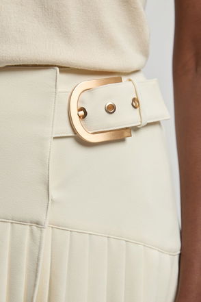 Tailored Crepe Pleated Wrap Buckle Detail Maxi Skirt
