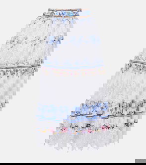 Crystal Lace-Trimmed Cotton Maxi Skirt