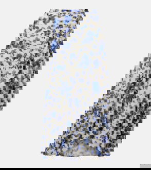 Pleated Floral-Print Silk-Crepe Midi Skirt