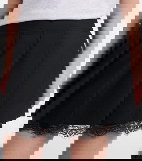 Satin Asymmetric Short Skirt With Lace