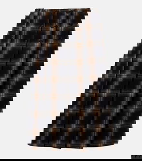 Leather-Trimmed Pleated Checked Wool Midi Skirt