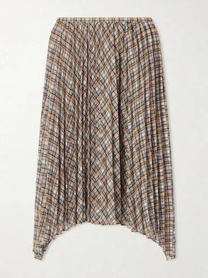 Essai Metallic Plissé Silk-Blend Midi Skirt