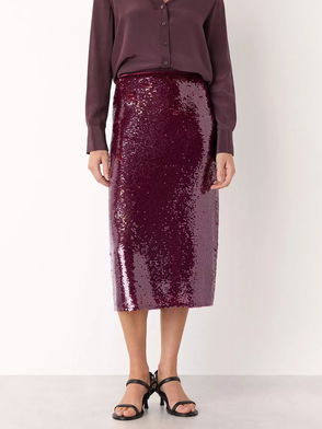 Sequin Midi Skirt, Merlot