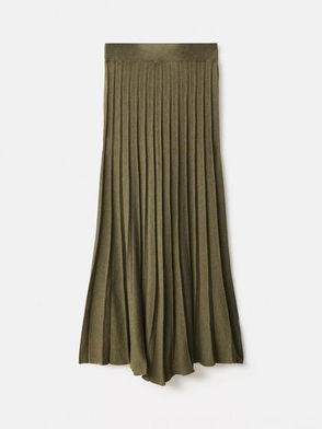 Wool Mix Pleated Maxi Skirt In Khaki