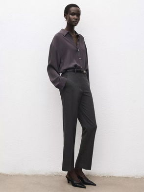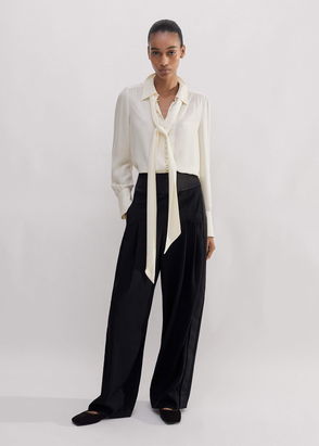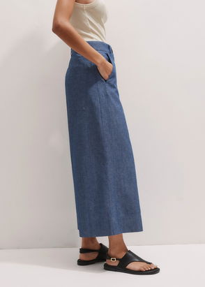 Tailored Wide Tapered Trouser + Belt Summer Chocolate