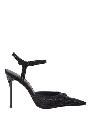 Minette Leather-Trimmed Crystal-Embellished Mesh Pumps