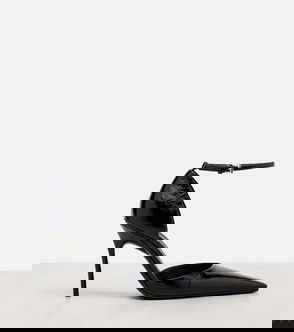 Crinkle-Effect Sculptural-Heel Pointed-Toe Mules