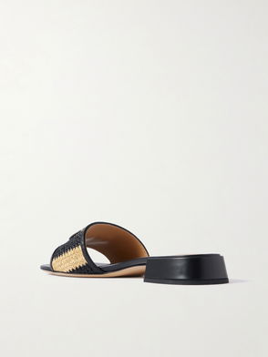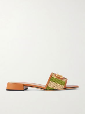 VLogo Embellished Leather-trimmed Striped Raffia Slides