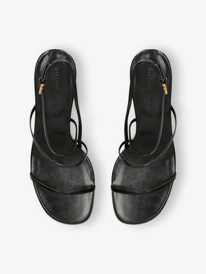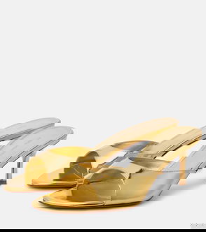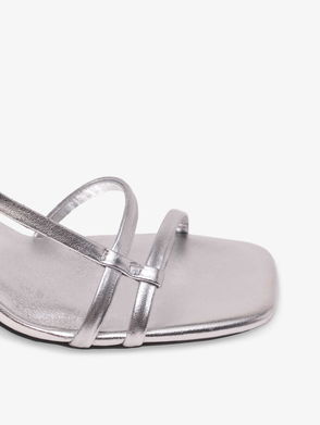 Chain-Embellished Metallic-Leather Heeled Sandals