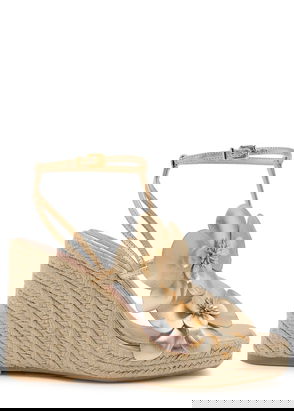 Rockstud Metallic Faux Raffia Wedge Sandals
