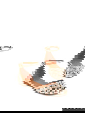 Gold Bianca Gold Leather Cage-Front Flat Sandals