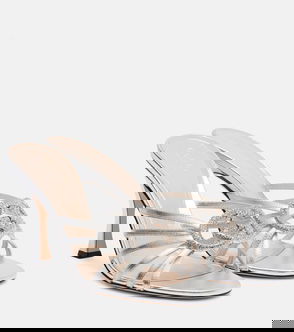Gabine Crystal-Embellished Buckle Metallic Leather Slides