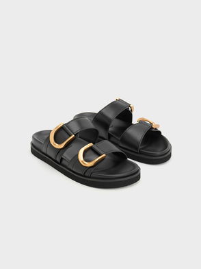 Whitney Leather Buckled Square-Toe Slide Sandals