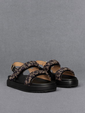 Fannie Linen Interwoven Cut-Out Slide Sandals